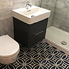 Before and after of our latest bathroom at Glasgow's Southside in Pollokshields. Wall hung furniture and marble on the walls really complimented this lovely flat.
